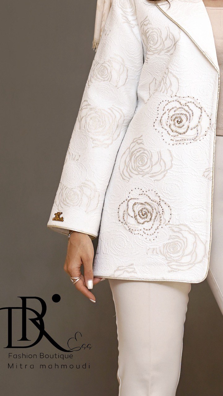 این کت زیبا دارای طرح گل رز که با جواهرات برند تزئین شده است